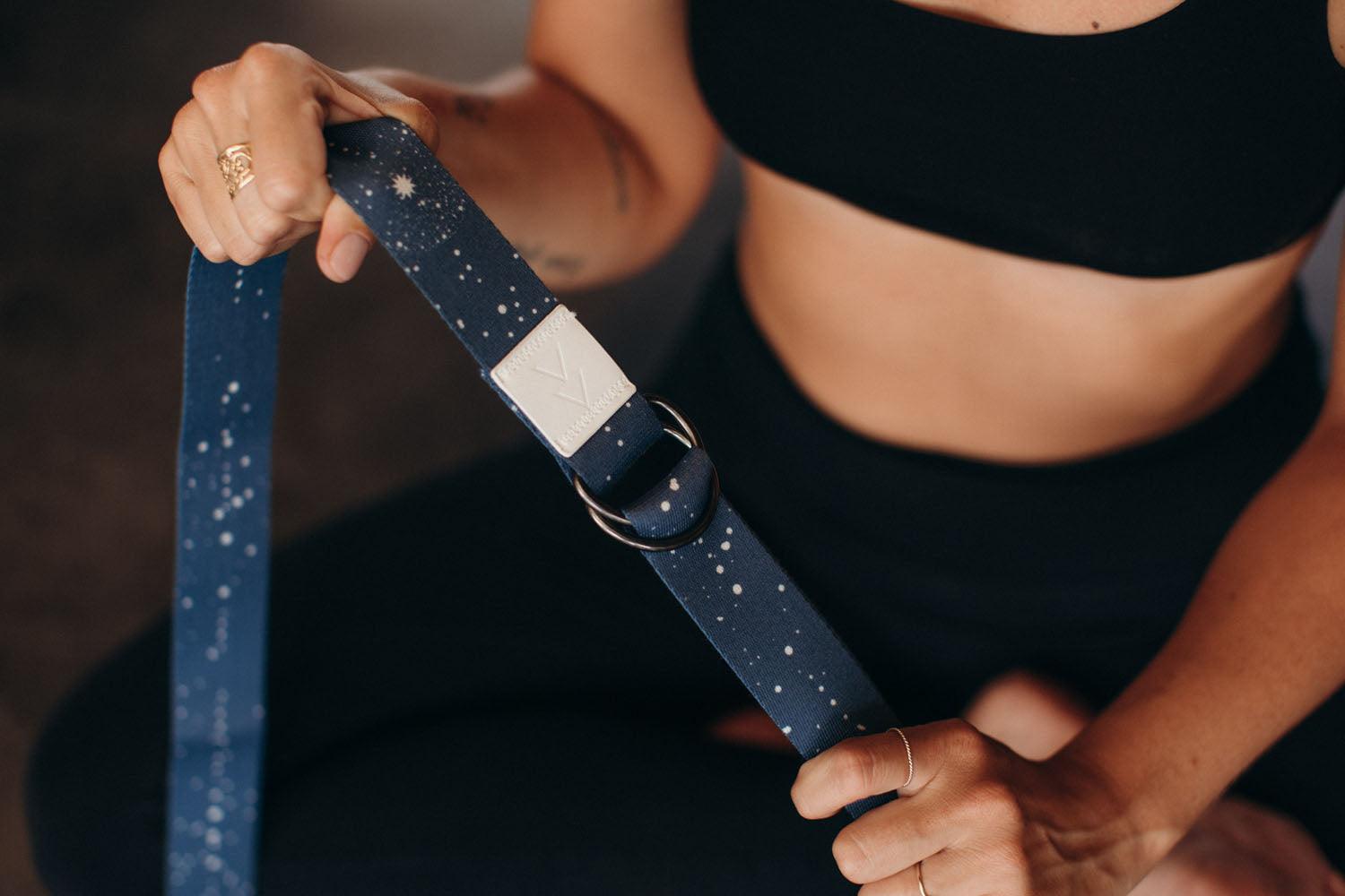 Illuminate your practice with the Yoga Design Lab Yoga Strap in Celestial. Featuring a cosmic-inspired design with deep blues and radiant stars, this strap adds a touch of magic to your flow. Perfect for deepening stretches, improving flexibility, and achieving optimal alignment, it‚ is the perfect blend of style, support, and serenity.